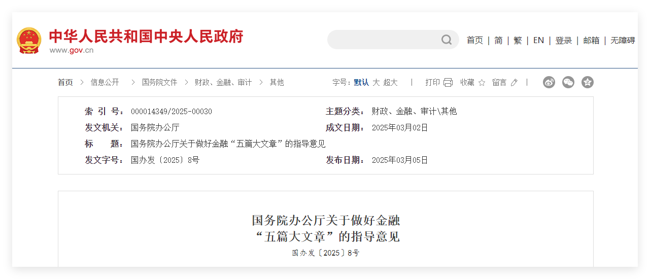 國務(wù)院辦公廳關(guān)于做好金融“五篇大文章”的指導(dǎo)意見