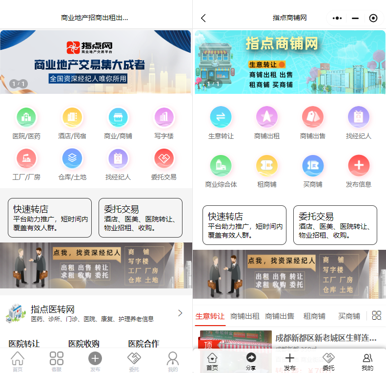 截至2025年,指點(diǎn)網(wǎng)已匯聚超180萬(wàn)商業(yè)物業(yè)資源,覆蓋全國(guó)300多個(gè)城市。無(wú)論是上海靜安區(qū)的黃金鋪位,還是成都社區(qū)底商,都能快速找到買(mǎi)家。平臺(tái)甚至細(xì)分到“醫(yī)院轉(zhuǎn)讓”“廠(chǎng)房出租”酒店轉(zhuǎn)讓等垂直領(lǐng)域,滿(mǎn)足個(gè)性化需求。