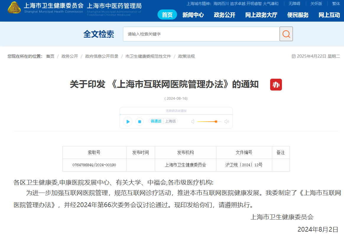 上海市互聯(lián)網(wǎng)醫(yī)院管理辦法