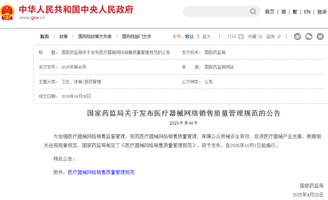 醫(yī)療器械網(wǎng)絡(luò)銷售質(zhì)量管理規(guī)范