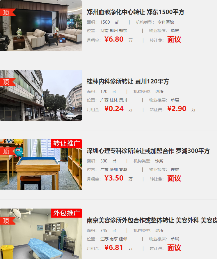 民營(yíng)醫(yī)院、診所等醫(yī)療機(jī)構(gòu)的轉(zhuǎn)讓涉及資質(zhì)審核、資產(chǎn)評(píng)估、客戶(hù)資源整合等復(fù)雜環(huán)節(jié),傳統(tǒng)中介模式不僅收取高額傭金,還難以精準(zhǔn)對(duì)接需求。而指點(diǎn)網(wǎng)深耕醫(yī)療垂直領(lǐng)域,專(zhuān)注于診所、門(mén)診、醫(yī)院、醫(yī)療美容及醫(yī)藥企業(yè)等業(yè)態(tài)的交易服務(wù),通過(guò)線上化、標(biāo)準(zhǔn)化、透明化的解決方案,徹底打破行業(yè)壁壘。