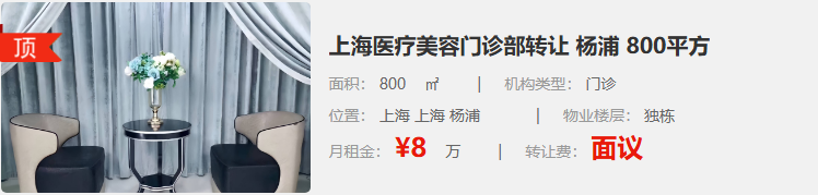 上海醫(yī)療美容門(mén)診部轉(zhuǎn)讓 楊浦 800平方
