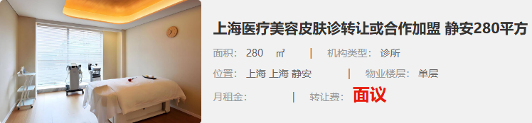 上海醫(yī)療美容皮膚診轉(zhuǎn)讓或合作加盟 靜安280平方