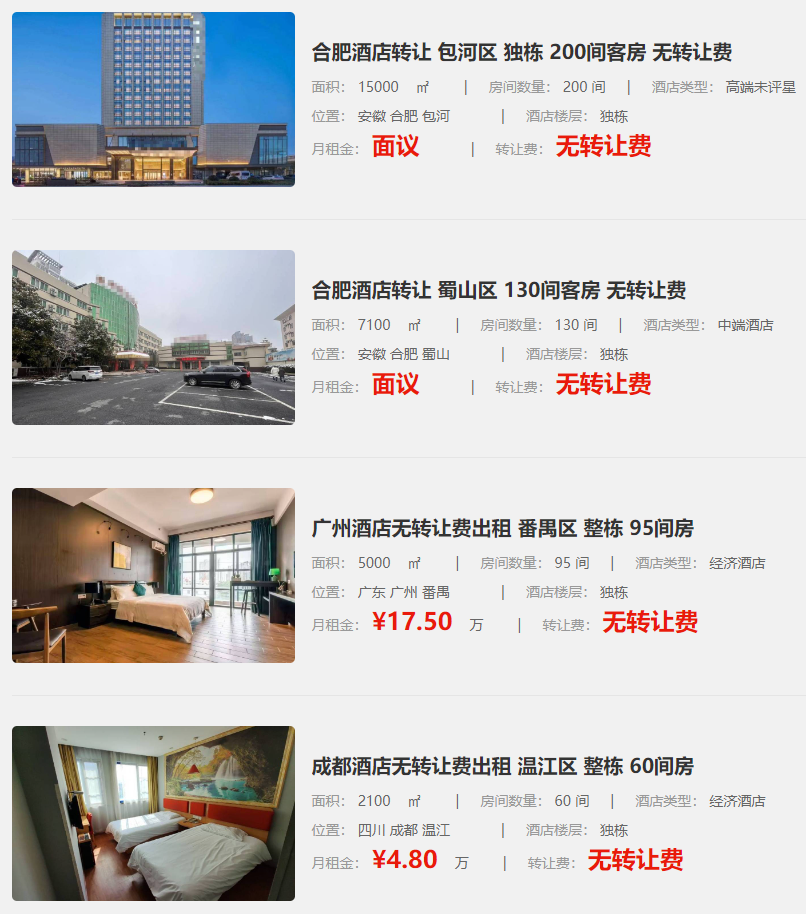 近期最新酒店轉(zhuǎn)讓無(wú)轉(zhuǎn)讓費(fèi)信息供參考