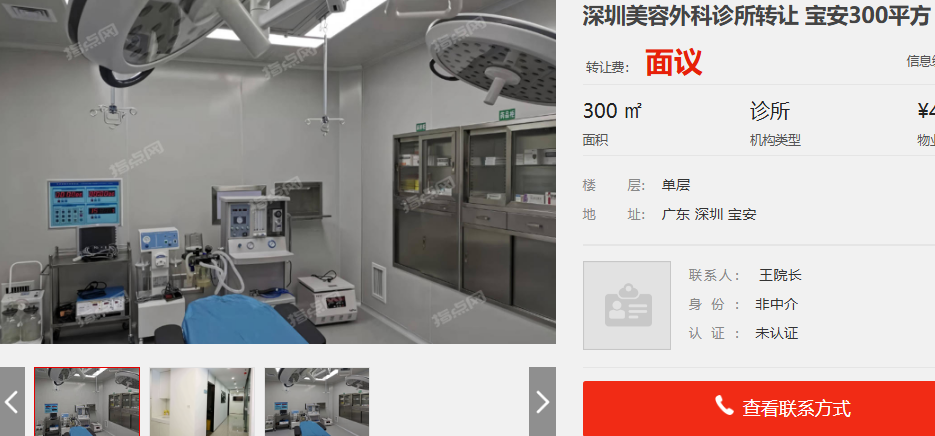 深圳美容外科診所轉(zhuǎn)讓 寶安300平方
