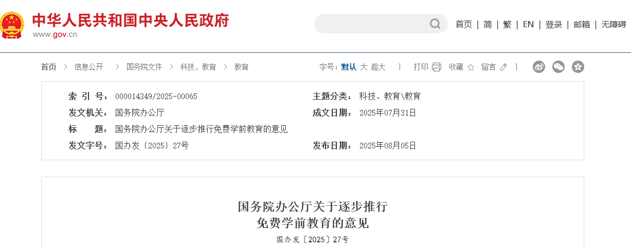 國務(wù)院印發(fā)《關(guān)于逐步推行免費學前教育意見》:開啟學前教育普惠新時代