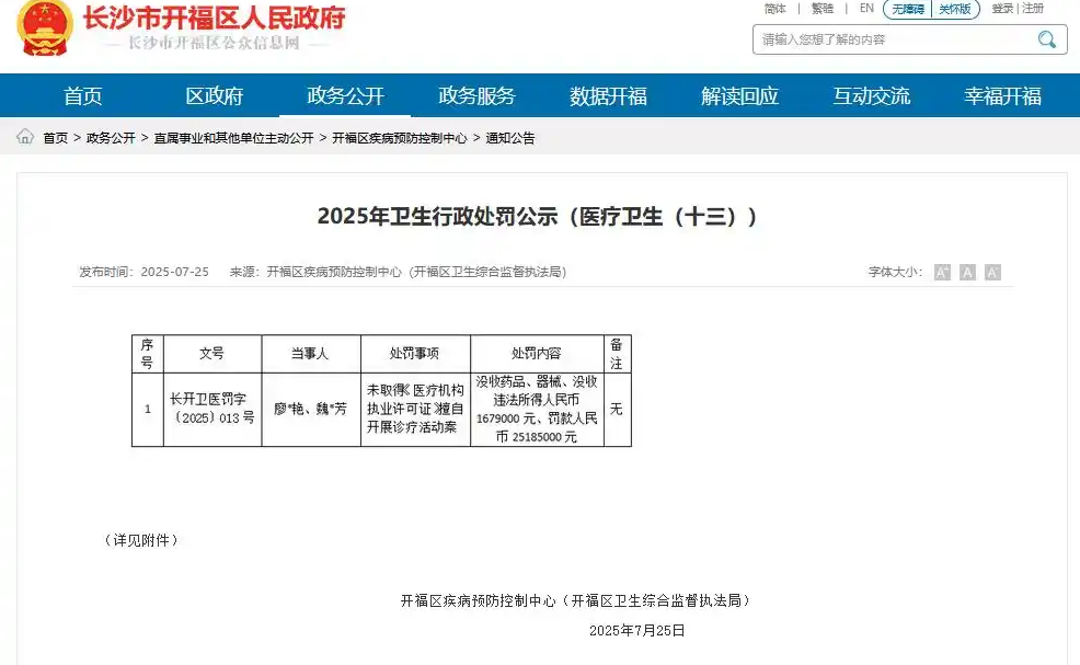 2025年8月23日,長沙市衛(wèi)健委聯(lián)合市場監(jiān)管、公安等部門公布的一則行政處罰通報引發(fā)社會震動:針對兩處非法代孕機構(gòu)的聯(lián)合執(zhí)法行動中,長沙縣對4名機構(gòu)開辦者開出1.32825億元天價罰單,開福區(qū)對同類機構(gòu)處以2518.5萬元罰款,累計1.58億元的處罰金額創(chuàng)下國內(nèi)代孕案件之最。這起涉及聾啞女性、無證醫(yī)療、跨省利益鏈的黑色產(chǎn)業(yè)案件,撕開了地下代孕市場的殘酷真相。