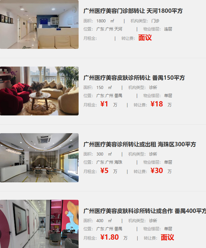 廣州美容門診轉(zhuǎn)讓 有麻醉資質(zhì) 海珠1700平方