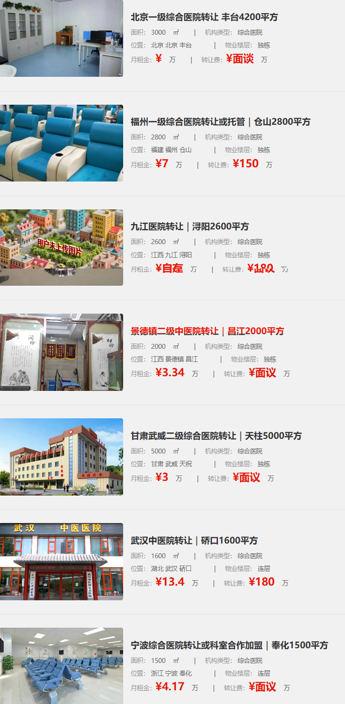 指點網(wǎng)是國內領先的專業(yè)醫(yī)院轉讓交易平臺,聚焦醫(yī)療資源優(yōu)化配置,為醫(yī)療機構轉讓、求購與合作提供高效解決方案。平臺匯聚全國海量優(yōu)質醫(yī)療資源,涵蓋綜合醫(yī)院、??漆t(yī)院、門診、醫(yī)美機構等多元類型,標的面積從百余平社區(qū)診所到數(shù)萬平獨棟醫(yī)院不等,覆蓋北京、上海、深圳等核心城市及全國各省市,滿足不同投資者的多樣化需求。
