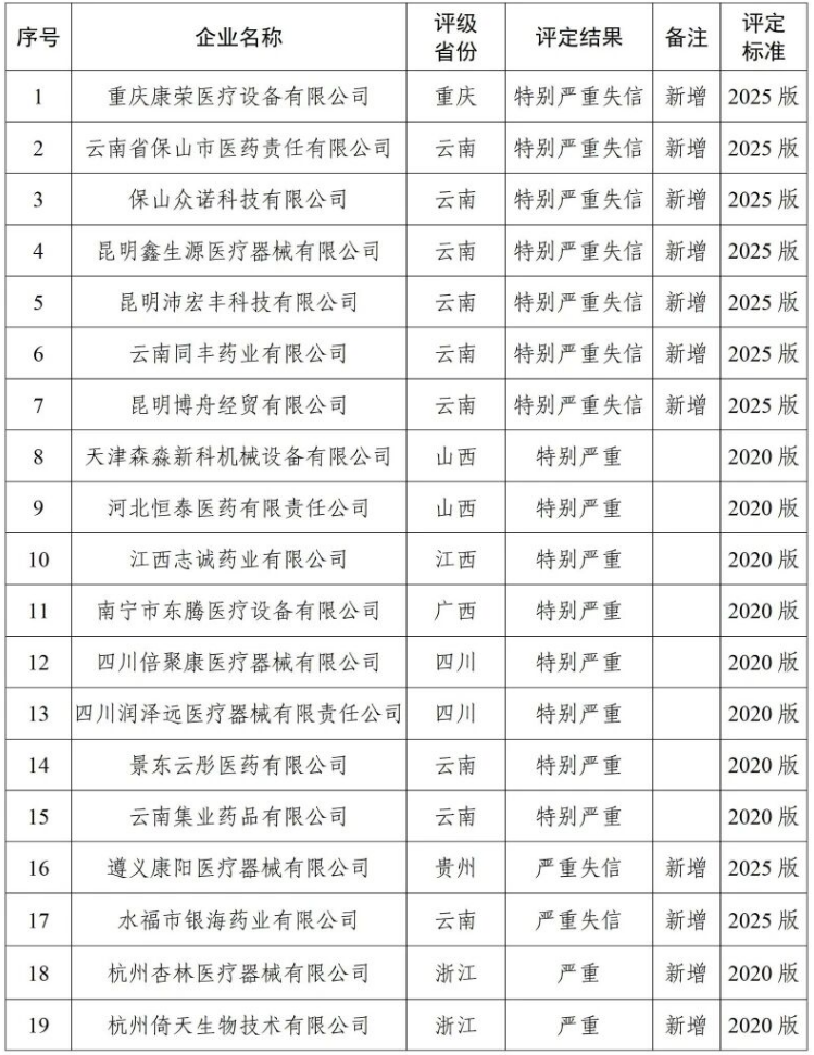 在本次評定中,有 7 家企業(yè)被新列入“特別嚴重失信”行列,重慶康榮醫(yī)療設(shè)備有限公司便是其中之一。這些新增的“特別嚴重失信”企業(yè),無疑在醫(yī)藥市場的誠信經(jīng)營方面出現(xiàn)了較為嚴重的問題,給行業(yè)秩序帶來了不良影響。