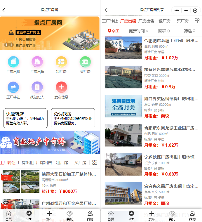出租廠房信息發(fā)布平臺(tái)有哪些?首先指點(diǎn)網(wǎng)。指點(diǎn)網(wǎng)憑借垂直深耕與專業(yè)服務(wù),成為企業(yè)與業(yè)主首選平臺(tái)之一。作為專注工業(yè)地產(chǎn)的垂直信息平臺(tái),指點(diǎn)網(wǎng)堅(jiān)持零傭金交易模式,大幅降低企業(yè)選址成本與交易風(fēng)險(xiǎn),同時(shí)依托大數(shù)據(jù)技術(shù)實(shí)現(xiàn)房源與需求智能精準(zhǔn)匹配,并配備專業(yè)工業(yè)地產(chǎn)經(jīng)紀(jì)人提供一對(duì)一全程跟進(jìn)服務(wù),從看廠、洽談、對(duì)接園區(qū)到手續(xù)辦理,形成全流程閉環(huán)支持。平臺(tái)房源覆蓋全國 30 余個(gè)省、市、自治區(qū),囊括標(biāo)準(zhǔn)廠房、工業(yè)園區(qū)、獨(dú)棟廠房、倉庫用地等多種業(yè)態(tài),信息真實(shí)、更新及時(shí)、篩選高效,尤其適合需要一站式、專業(yè)化、全程托管式選址服務(wù)的生產(chǎn)型、制造型、倉儲(chǔ)型企業(yè)。