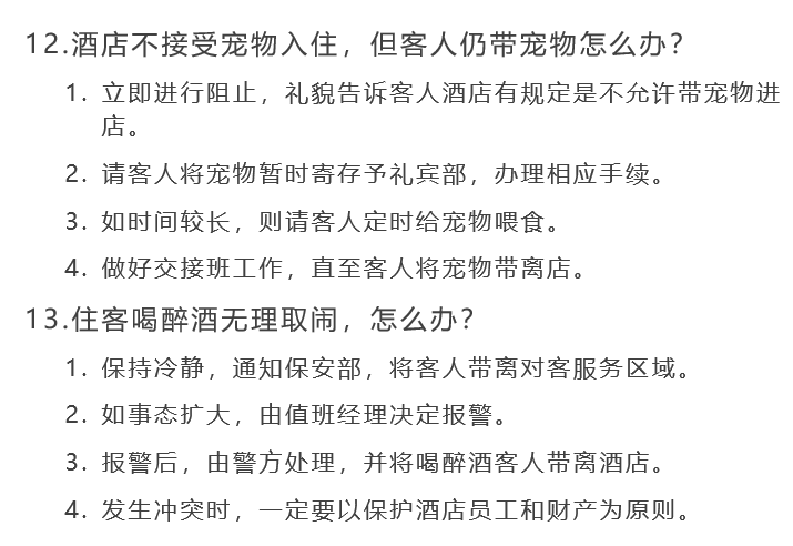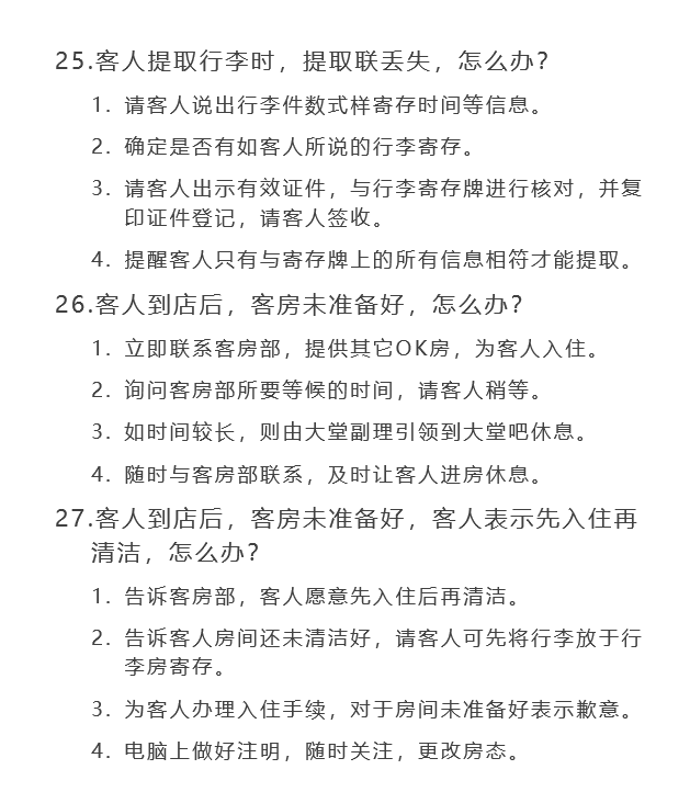 如有異議,與客人一起上房進(jìn)行查看,請客人回憶。