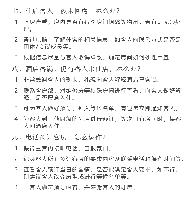 提醒客人有需要時,隨時通知酒店相關(guān)崗位為其服務(wù)。