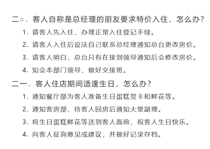 可先開房,但必須提醒客人,其晚到的朋友一定要登記,并做好跟進(jìn)工作。