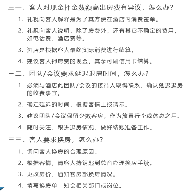 禮貌向客人解釋交押金是酒店的規(guī)定,是為了方便客人在酒店內(nèi)消費(fèi)。