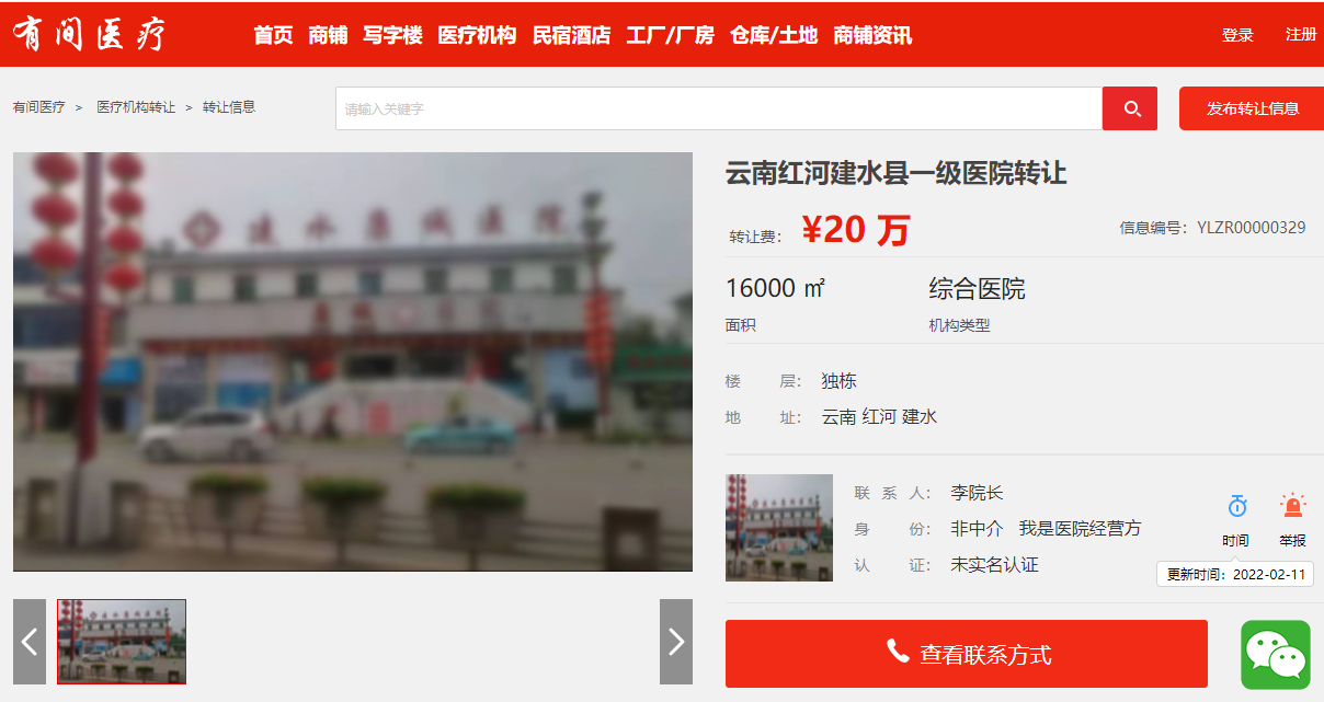 云南紅河建水縣一級(jí)醫(yī)院轉(zhuǎn)讓