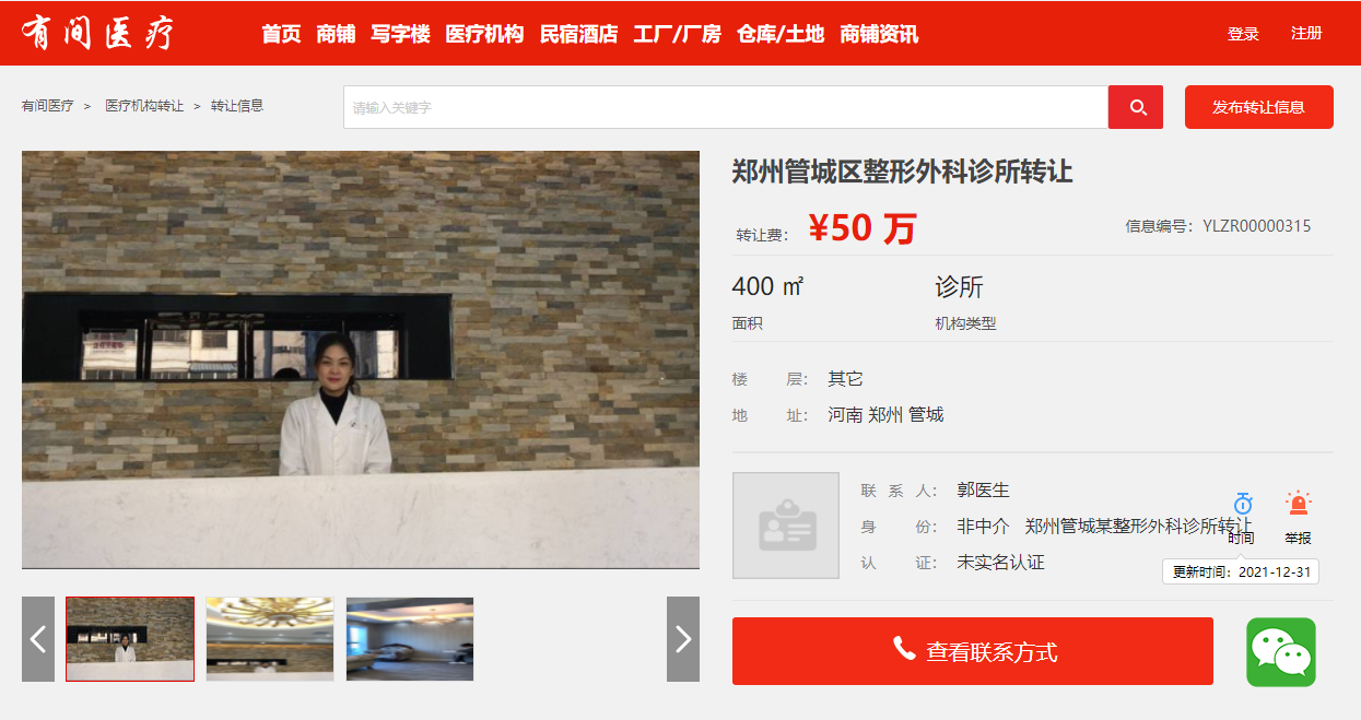 鄭州管城區(qū)整形外科診所轉(zhuǎn)讓