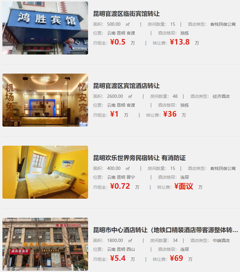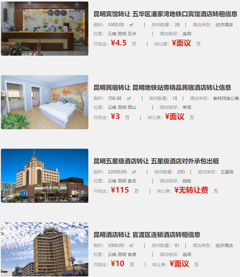 昆明酒店轉(zhuǎn)讓最新信息大全
