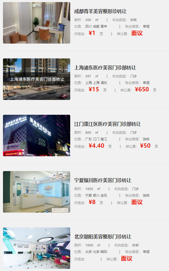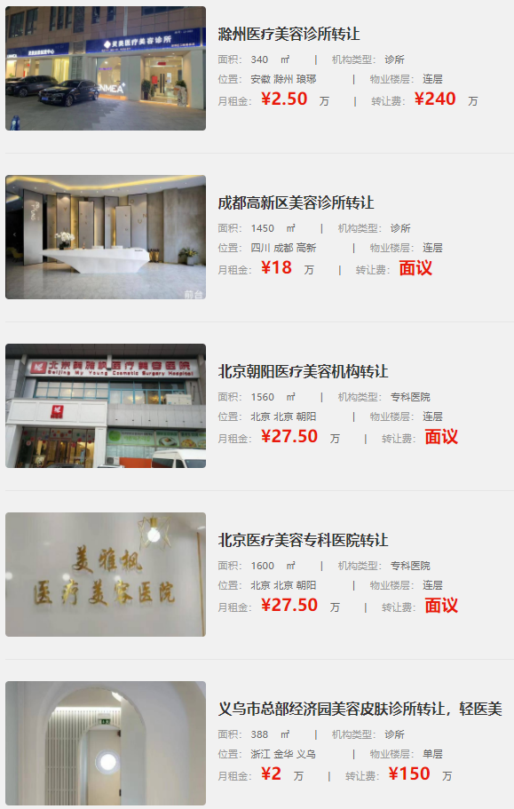 全國醫(yī)美機構(gòu)轉(zhuǎn)讓信息(部分)
