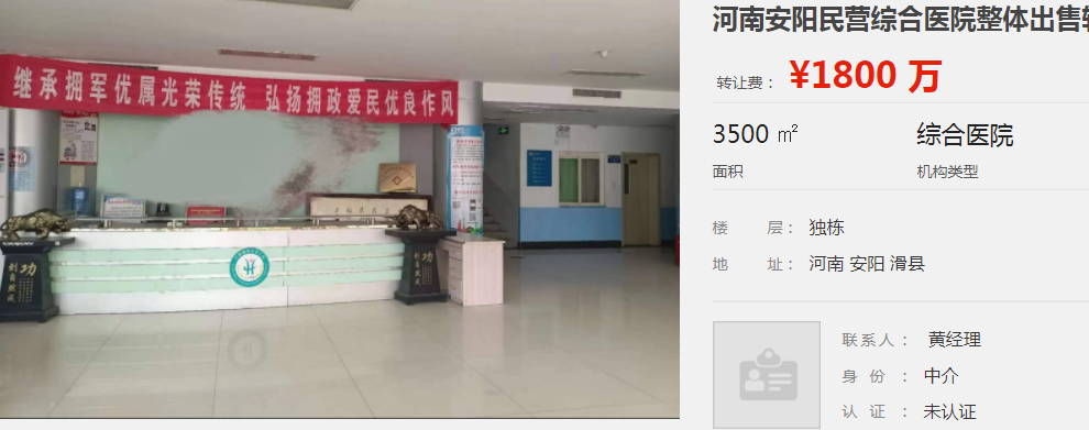 河南安陽(yáng)民營(yíng)綜合醫(yī)院整體出售轉(zhuǎn)讓