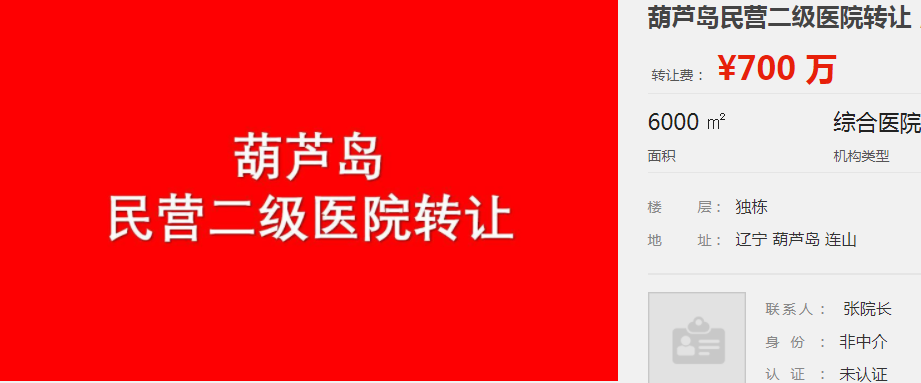 葫蘆島民營(yíng)二級(jí)醫(yī)院轉(zhuǎn)讓