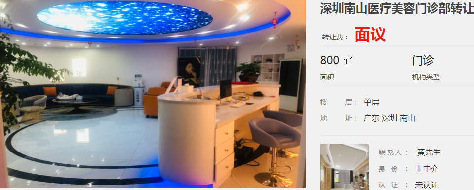 深圳南山醫(yī)療美容門診部轉(zhuǎn)讓