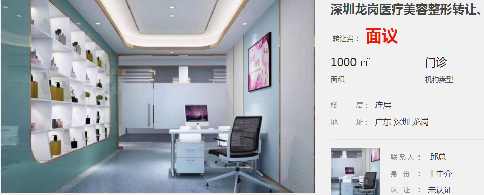 深圳龍崗醫(yī)療美容整形轉(zhuǎn)讓、醫(yī)美門診部轉(zhuǎn)讓信息