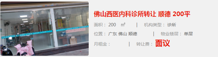 佛山西醫(yī)內(nèi)科診所轉(zhuǎn)讓 順德 200平