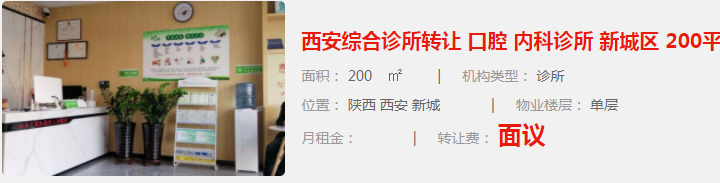 西安綜合診所轉(zhuǎn)讓 口腔 內(nèi)科診所 新城區(qū) 200平