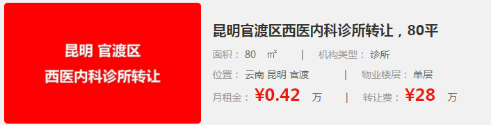 昆明官渡區(qū)西醫(yī)內(nèi)科診所轉(zhuǎn)讓,80平