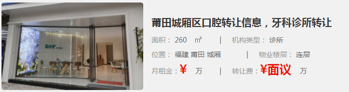 莆田城廂區(qū)口腔轉(zhuǎn)讓信息,牙科診所轉(zhuǎn)讓