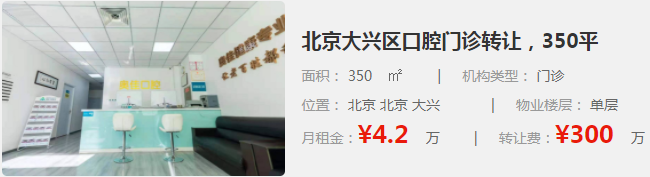 北京大興區(qū)口腔門診轉(zhuǎn)讓,350平