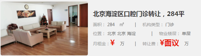 北京海淀區(qū)口腔門診轉(zhuǎn)讓,284平