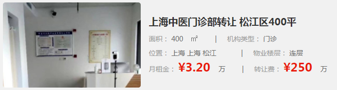 上海中醫(yī)門診部轉(zhuǎn)讓 松江區(qū)400平