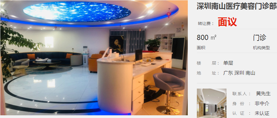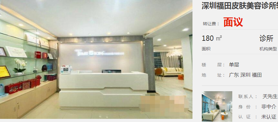 深圳南山醫(yī)療美容門診部轉(zhuǎn)讓