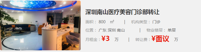深圳南山醫(yī)療美容門診部轉(zhuǎn)讓
