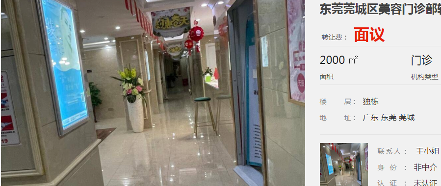 東莞莞城區(qū)美容門診部轉(zhuǎn)讓或合作加盟