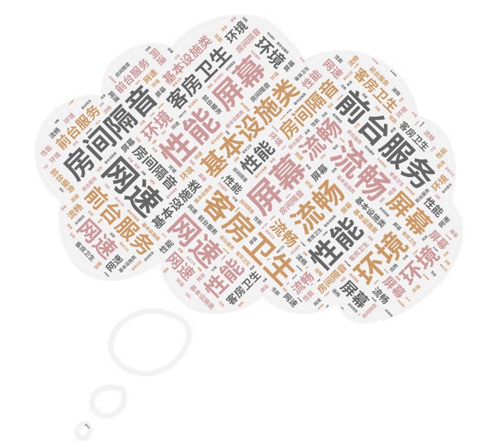 3.6 點評關(guān)鍵詞點評作為用戶住店真實感受的體現(xiàn),不僅對酒店產(chǎn)品服務(wù)的提升具有借鑒價值,也能反映中用戶的真實需求和痛點。抓住了用戶的需求,就鎖定了未來的盈利預(yù)期。2022年度數(shù)據(jù)顯示,用戶對于電競酒店的需求不止于電競。從用戶的點評關(guān)鍵詞數(shù)據(jù)來看,電競酒店的點評關(guān)鍵詞中,電腦配置類關(guān)鍵詞如屏幕、性能、流暢、網(wǎng)速等等被頻繁提起,除此之外,前臺服務(wù)、客房衛(wèi)生、房間隔音等服務(wù)、環(huán)境、基本設(shè)施類關(guān)鍵詞也是主要的差評原因??梢娪脩魧τ陔姼偩频甑男枨蟛粌H僅在于玩好游戲,也在于舒適的住宿體驗。