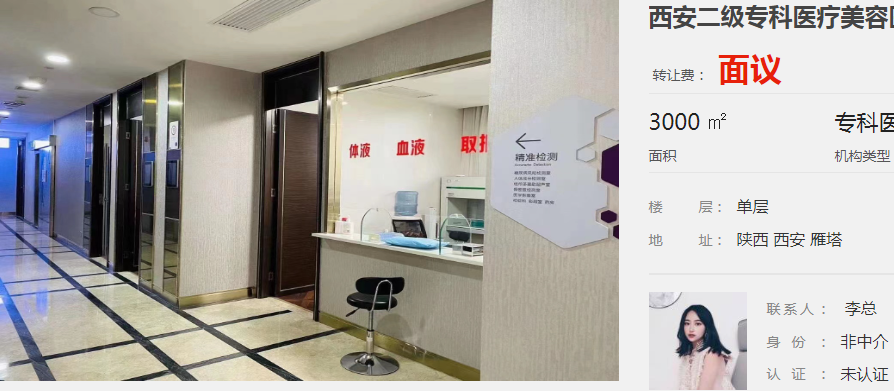 西安二級(jí)專科醫(yī)療美容醫(yī)院轉(zhuǎn)讓 3000平