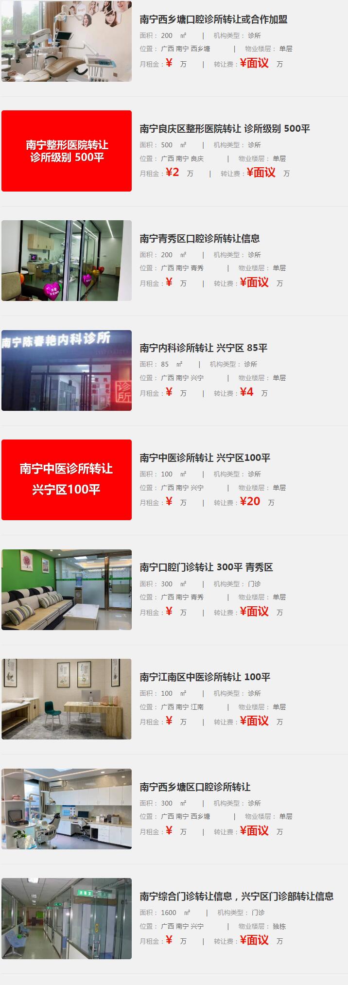 興寧區(qū)是診所轉(zhuǎn)讓的熱門區(qū)域:在提供的信息中,興寧區(qū)出現(xiàn)了多個診所轉(zhuǎn)讓的信息,顯示該區(qū)域在南寧市的醫(yī)療服務市場中具有較高的需求和活躍度。
