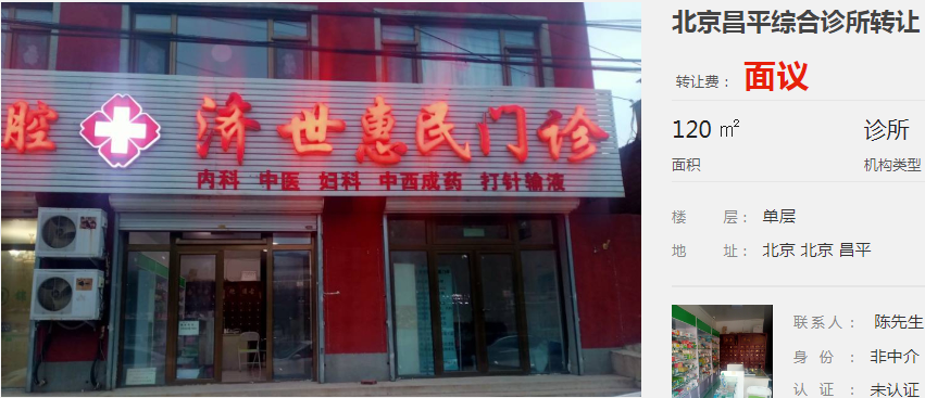 北京昌平區(qū)的綜合診所轉(zhuǎn)讓: