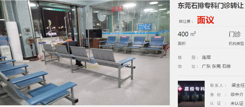 以下是指點網(wǎng)關于東莞地區(qū)的醫(yī)療診所轉(zhuǎn)讓的總結(jié):