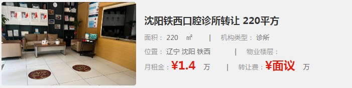 沈陽鐵西口腔門診轉(zhuǎn)讓信息