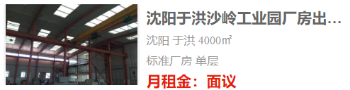 沈陽于洪沙嶺工業(yè)園廠房出租