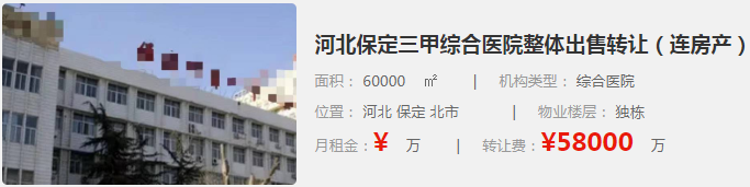 河北保定三甲綜合醫(yī)院整體出售轉(zhuǎn)讓(連房產(chǎn))