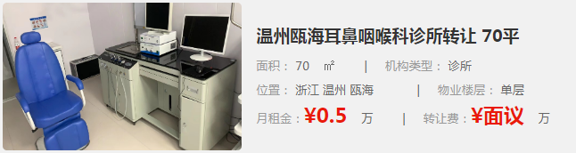 溫州甌海耳鼻咽喉科診所轉讓 70平