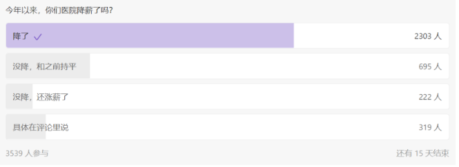 許多醫(yī)護(hù)人員表示科室獎(jiǎng)金遠(yuǎn)不如他們剛上班時(shí)那么高。有醫(yī)護(hù)人員在網(wǎng)上發(fā)帖稱:“我們醫(yī)院要降薪30%!病人越來(lái)越多,卻還要降薪,真是讓人感到心寒?!庇行└闹髦吾t(yī)生也表示,他們的工資已經(jīng)降低了,現(xiàn)在一個(gè)月只能拿到三千多元。