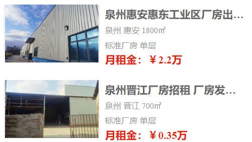 泉州地區(qū)的廠房出租面積較大,大小范圍不等。這意味著泉州地區(qū)有較大規(guī)模的工業(yè)需求,可能涉及到生產(chǎn)制造、物流倉(cāng)儲(chǔ)等各個(gè)行業(yè)。