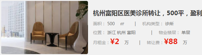 3. 杭州富陽區(qū)醫(yī)美診所轉(zhuǎn)讓: