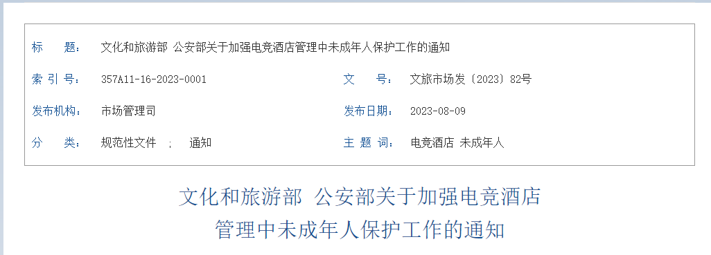 近年來,電競酒店行業(yè)快速發(fā)展,在滿足群眾需求、擴大消費等方面起到了積極作用,同時也存在接待未成年人等引發(fā)社會關注的問題。為認真貫徹落實《中華人民共和國未成年人保護法》有關規(guī)定,根據最有利于未成年人原則,切實加強電競酒店管理中未成年人保護工作,促進行業(yè)健康有序發(fā)展,現就有關事項通知如下。